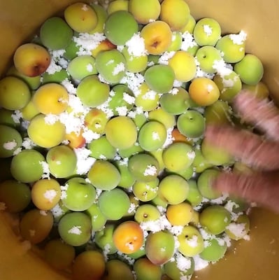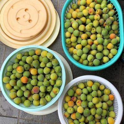 VOL.1は「今年の梅干しづくりは増量!」です。先ずは昔ながらの塩っ辛い梅干しのプロセスを紹介します。6月に入りスーパーで南高梅のLサイズ、その中でも色味が黄色の梅を選んで17㎏を購入。その後、へたとり➡水洗い➡干し➡塩漬け➡自家製シソの葉の選定➡2度の塩もみでシソ汁抽出➡梅漬けにシソ汁を注入➡あとは寝かせる➡最後の写真の今に至る➡いつかどこかで天日干し