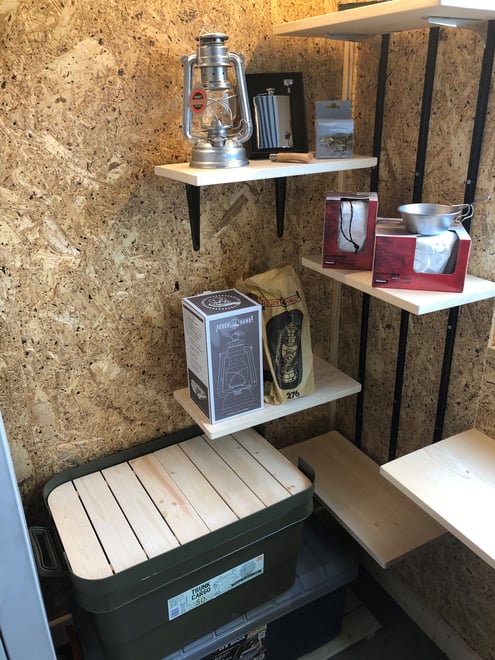 そうしたら、投稿の翌週にはDCMカーマの3店舗のキャンプ用品特設売場のエンドコーナーにその道具箱が展示されているではないですか!