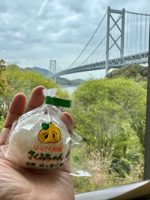 帰路、私のターニングポイントになった広島県福山市に寄って、能楽鑑賞の初体験とお世話になった方と一献お礼、また、もう一度あの「サクッ・ジュワ―・甘」が忘れられなくて早朝バスで買い求めた「はっさく大福」、G7サミットでおやつに出された「島ごごろ」を以下写真でご紹介